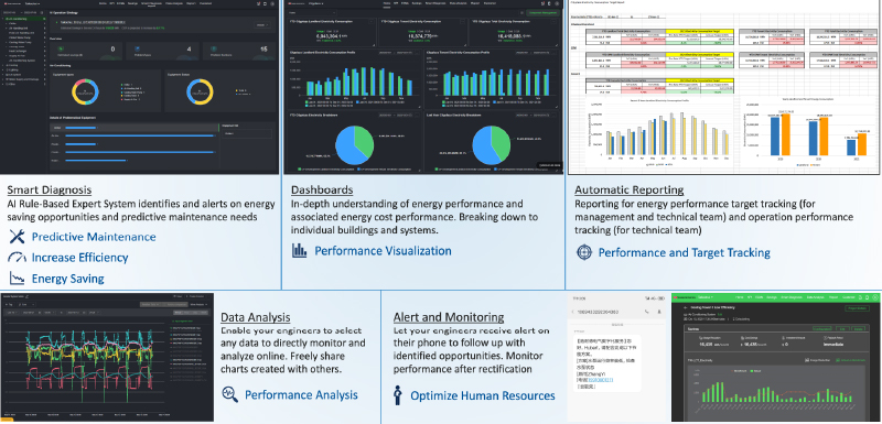 Providing real-time monitoring and analysis of energy and BMS operation data, identifying energy saving opportunities and maintenance insights through a customizable and flexible cloud platform.