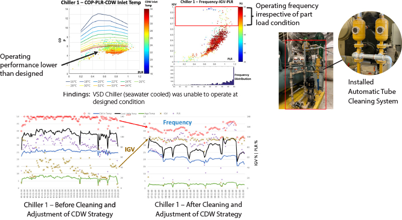 - VSD Chiller (seawater-cooled) was unable to operate at designed condition.